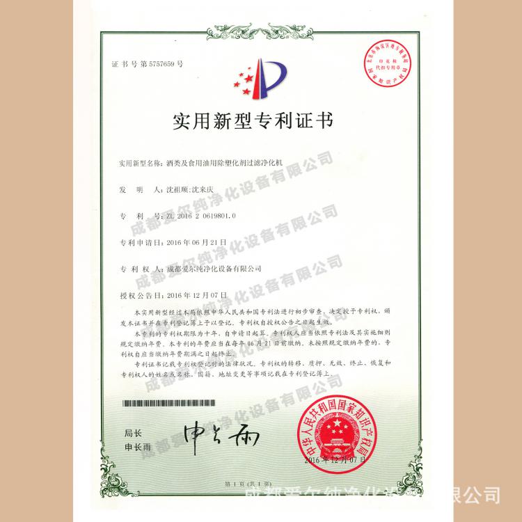 該白酒塑化劑專用過濾機,采用多級特級酒塑化劑專用高分子材料和分子篩相結合。主要通過酒專用塑化劑高分子過濾材料,內部豐富的空隙,將相同分子結構的塑化劑分子(鄰苯二甲酸)二(2-乙基)乙酯(DEHP)、鄰苯二甲酸二異壬脂(DINP)、鄰苯二甲酸二丁酯(DBP),吸附到酒塑化劑專用高分子中,在通過濾芯過濾,已達到去除塑化劑的目的。經該型號,塑化劑專用過濾機過濾后的白酒,塑化劑含量達到低于國家塑化劑(鄰苯二甲酸二(2-乙基)乙酯(DEHP)1.5MG/KG、鄰苯二甲酸二異壬脂(DINP)9.0MG/KG、鄰苯二甲酸二丁酯(DBP)0.3MG/KG)標準。