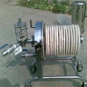 該機(jī)采用優(yōu)質(zhì)不銹鋼制作,由較大直徑的不銹鋼成形片、網(wǎng)制成濾片,片上罩濾布套,形成單元過濾片。具有外形美觀、操作方便、效率高等優(yōu)點(diǎn)。過濾澄清度可達(dá)95.8%以上,操作得當(dāng),能濾除0.1微料以下微粒,甚至可以去除大腸桿菌。該機(jī)已在白酒、果酒、低度酒、黃酒、飲料、水處理、制藥、化工等行業(yè)廣泛應(yīng)用。
