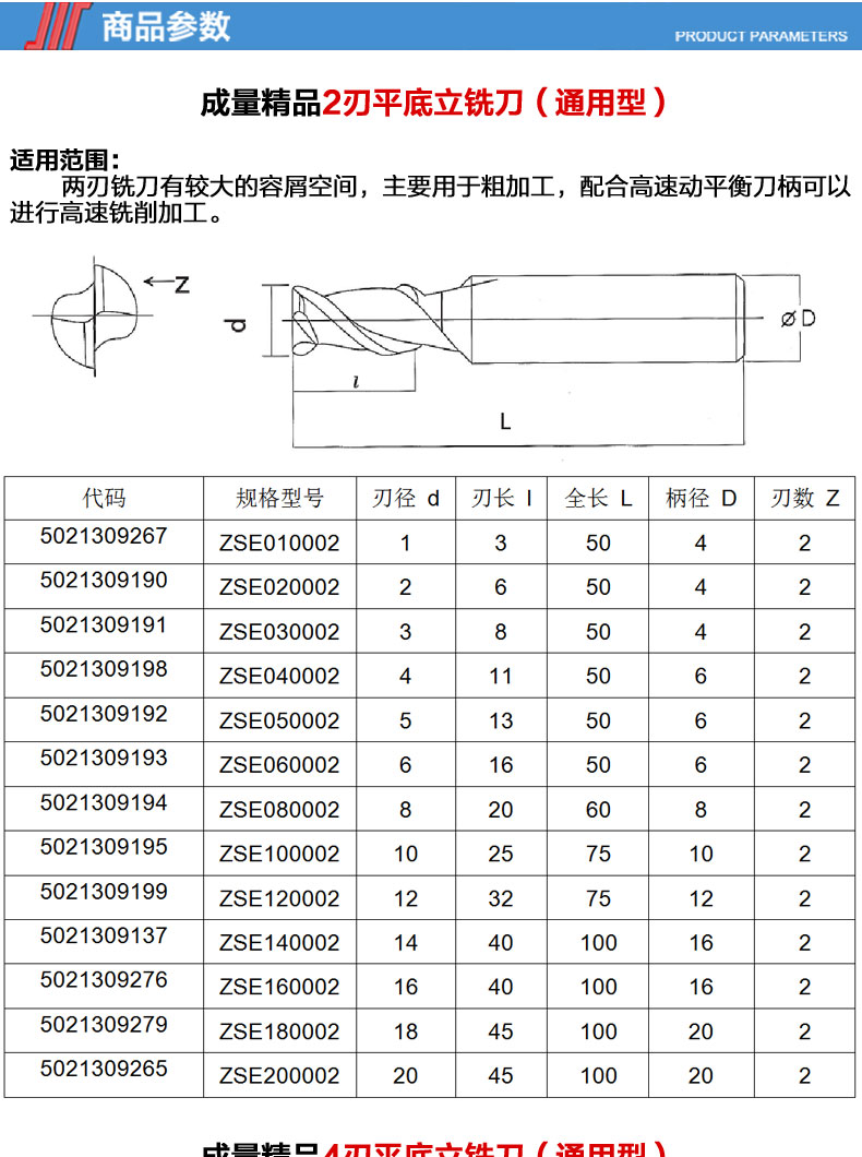 成量 整體合金平底立銑刀 ZSE080004 四刃平底立銑刀