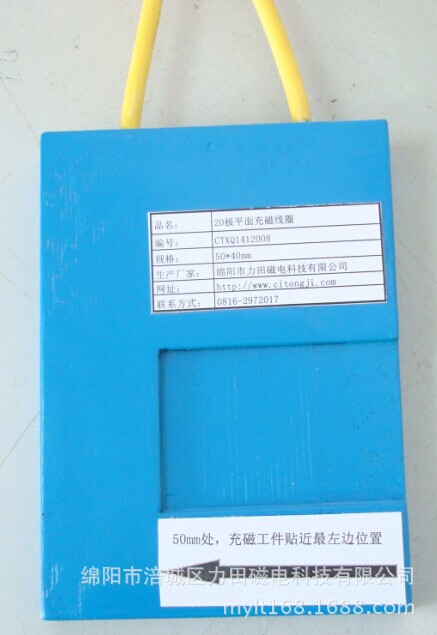 充磁線圈以磁路原理設(shè)計各種形狀復(fù)雜的負載(或叫充磁頭,充磁線圈),在磁鋼的園周,平面,凹凸面有角度要求的軸向,徑向,輻射向,各種形狀磁鋼上的多極等實施充磁,對有些磁性器件有獨到的充磁方法.如里程表,隔離器等.