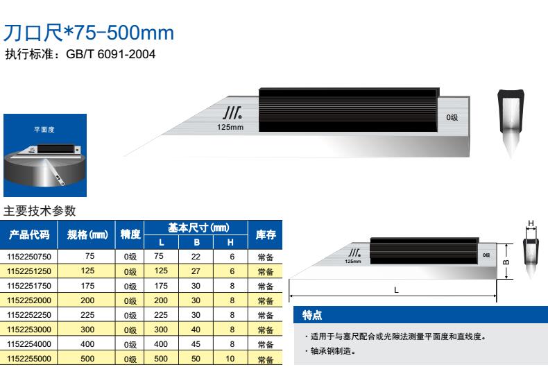 成量刀口尺0級(jí)75/125/200/300mm直線度測(cè)量 平面度測(cè)量 刀 規(guī)格齊全