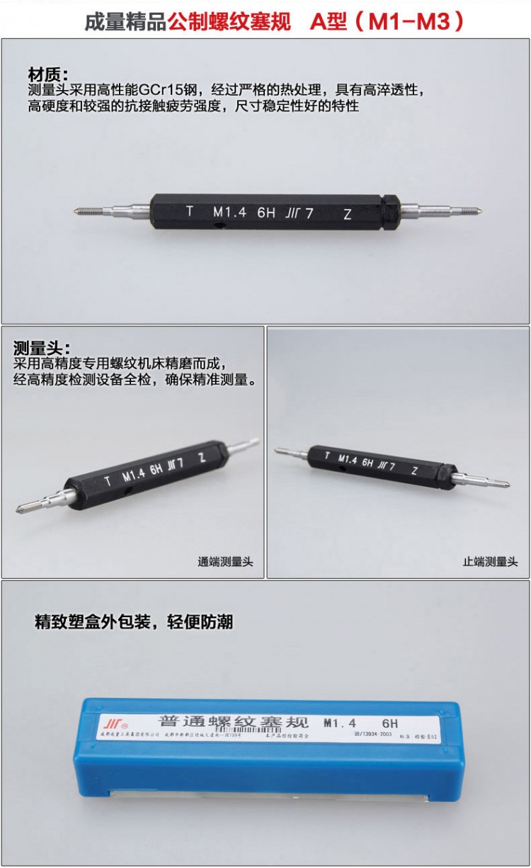成量公制螺紋塞規(guī)粗牙細(xì)牙通止規(guī)牙規(guī)螺紋規(guī)M5 6 8 10 12 14 6H