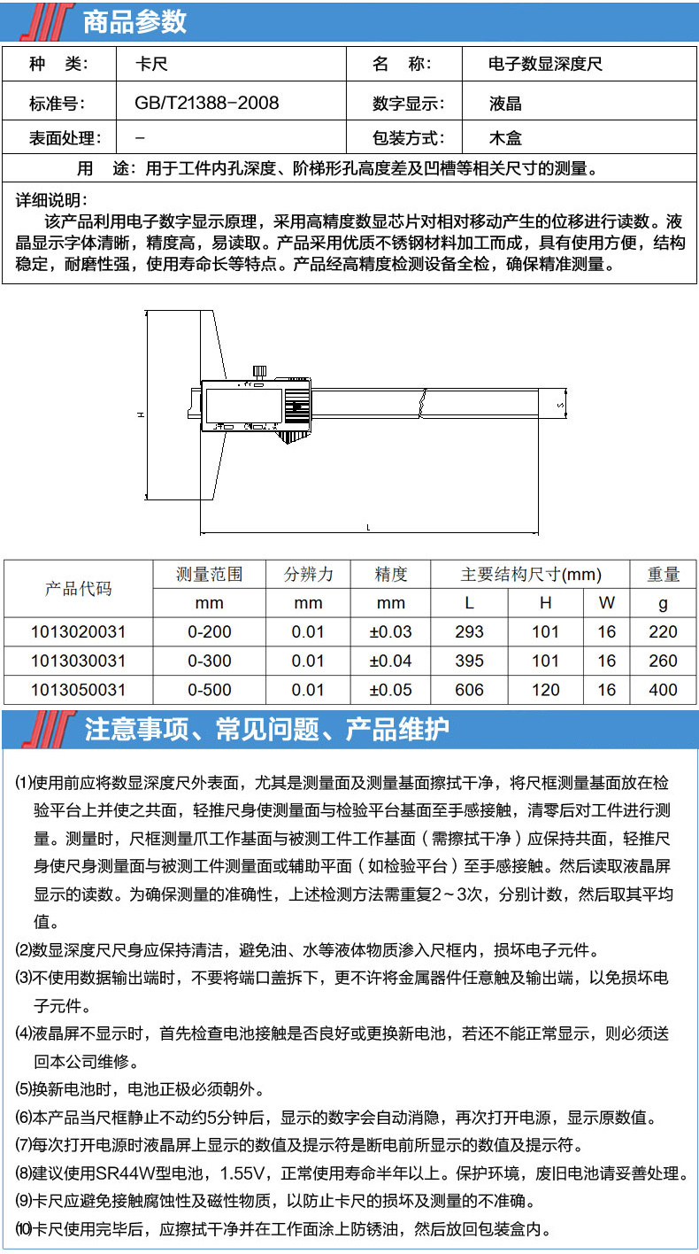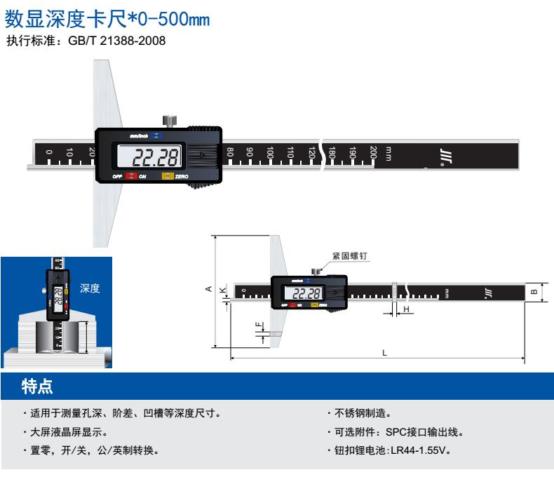 成量數(shù)顯深度卡尺0-200mm/0-300mm/0-500mm深度測量尺