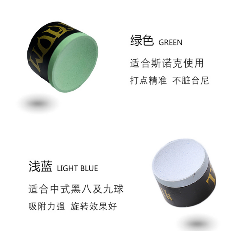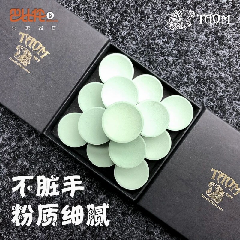 相關(guān)介紹:此巧克粉屬于芬蘭進(jìn)口,是巧克工業(yè)的創(chuàng)新革命,TAOM使用壽命為普通巧粉的兩倍,手工制作,結(jié)構(gòu)科學(xué),做工精湛,越來(lái)越多職業(yè)球員及臺(tái)球愛(ài)好者使用。     特點(diǎn):打點(diǎn)精準(zhǔn),不臟臺(tái)尼,不臟手,吸附力強(qiáng),旋轉(zhuǎn)效果好,防靜電,粉質(zhì)細(xì)膩如絲,顆粒飽滿,加塞不滑桿。