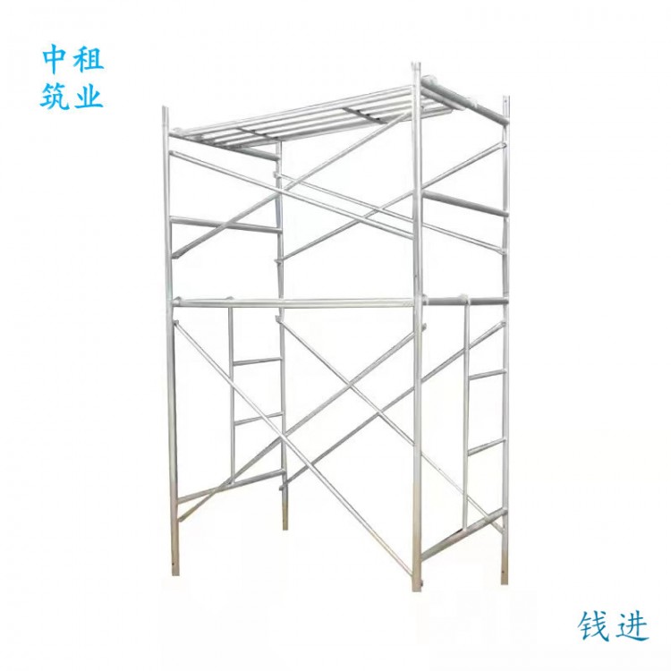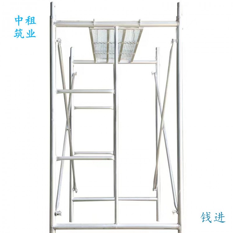移動腳手架主要由主框,橫框,交叉斜撐,腳手板,可調底座等組成。交叉拉桿又稱斜拉桿、是縱向連接兩副門架的交叉型拉桿。桿件兩端壓扁部分沖有銷孔,組裝時與門架立桿上的鎖銷鎖牢。表面處理:電鍍(冷鍍鋅)、浸鋅(熱鍍鋅)腳輪:又稱為地輪,可安裝在移動腳手架下部,組成移動式腳手架.可作為機電安裝.油漆粉刷.設備維修.廣告制作的活動工作平臺.腳輪為6寸帶剎車,具有使用方便.移動靈活.安全可靠等特點.