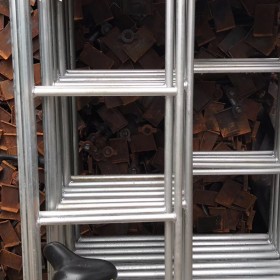 移動(dòng)腳手架主要由主框,橫框,交叉斜撐,腳手板,可調(diào)底座等組成。交叉拉桿又稱斜拉桿、是縱向連接兩副門(mén)架的交叉型拉桿。桿件兩端壓扁部分沖有銷孔,組裝時(shí)與門(mén)架立桿上的鎖銷鎖牢。表面處理:電鍍(冷鍍鋅)、浸鋅(熱鍍鋅)腳輪:又稱為地輪,可安裝在移動(dòng)腳手架下部,組成移動(dòng)式腳手架.可作為機(jī)電安裝.油漆粉刷.設(shè)備維修.廣告制作的活動(dòng)工作平臺(tái).腳輪為6寸帶剎車,具有使用方便.移動(dòng)靈活.安全可靠等特點(diǎn).