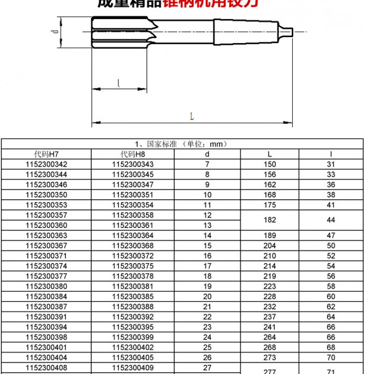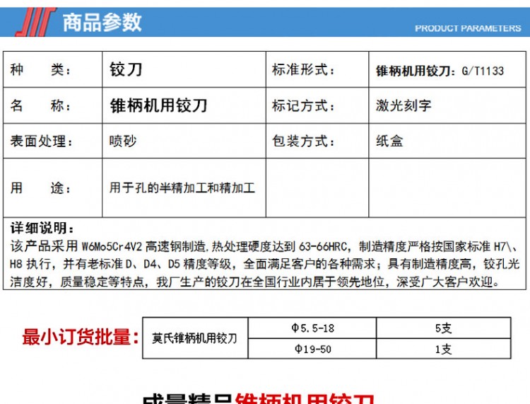 成量 錐柄機(jī)用鉸刀高速鋼材質(zhì)5.5-50-H7
