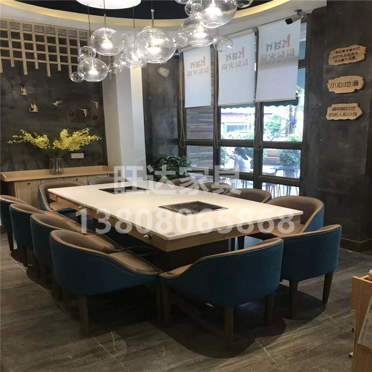 3、該燒烤涮一體桌可適配4000瓦火鍋大功率商用電陶爐,一鍵操作方便快捷,內(nèi)外火力雙環(huán)雙控,安全環(huán)保又節(jié)能,鈦晶面板耐高溫,不易破裂。本全石材燒烤涮一體桌價(jià)格實(shí)惠,是烤肉店,宵夜檔常用的火鍋?zhàn)乐弧6ㄗ龌疱佔(zhàn)雷?/span>