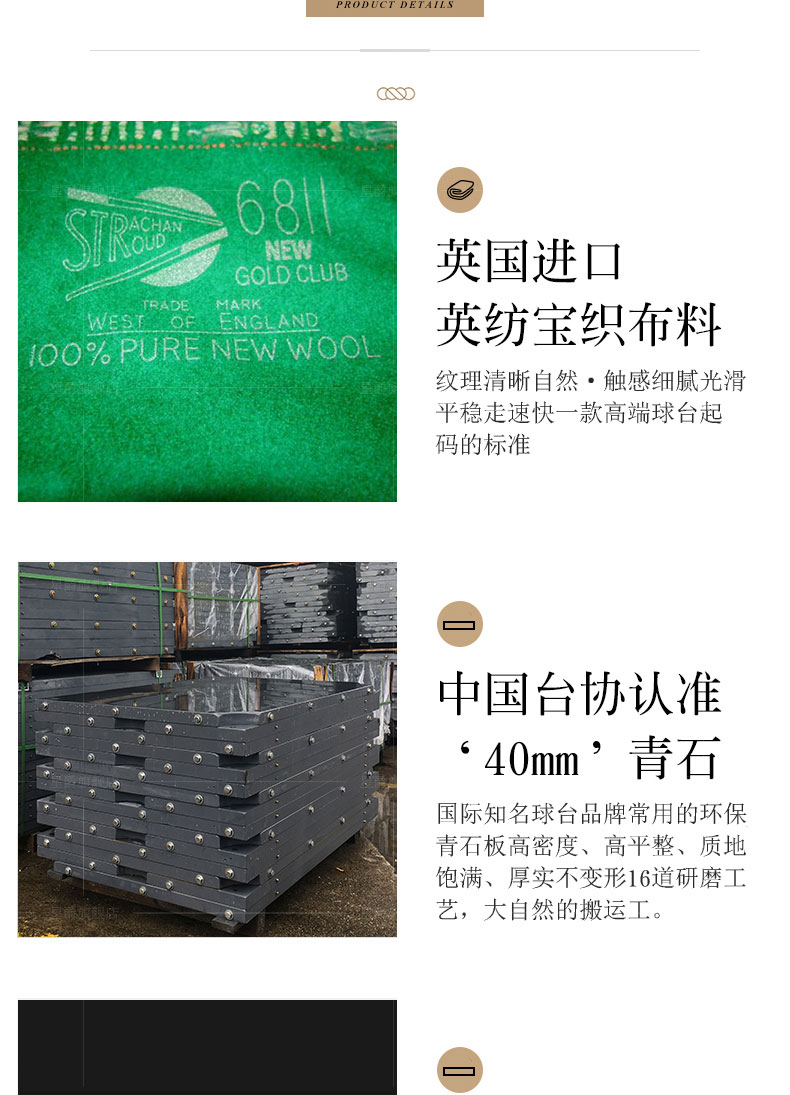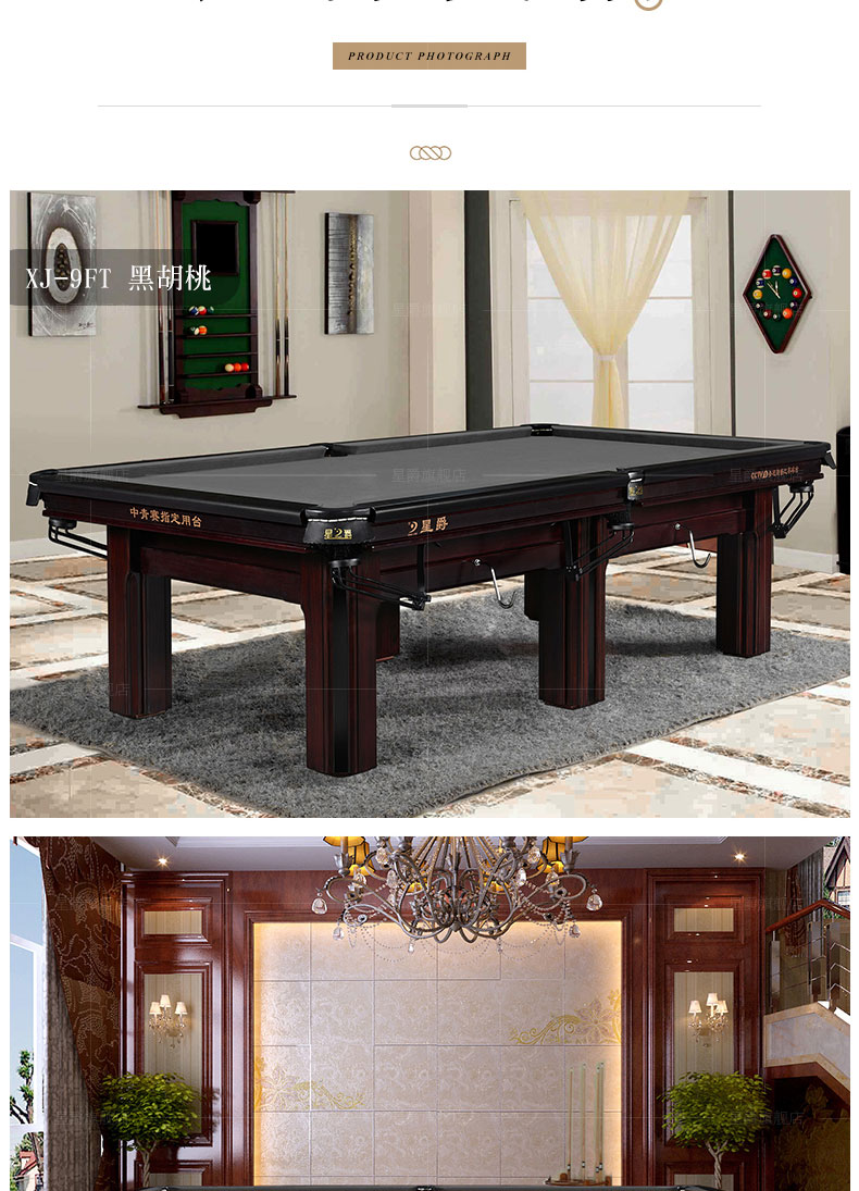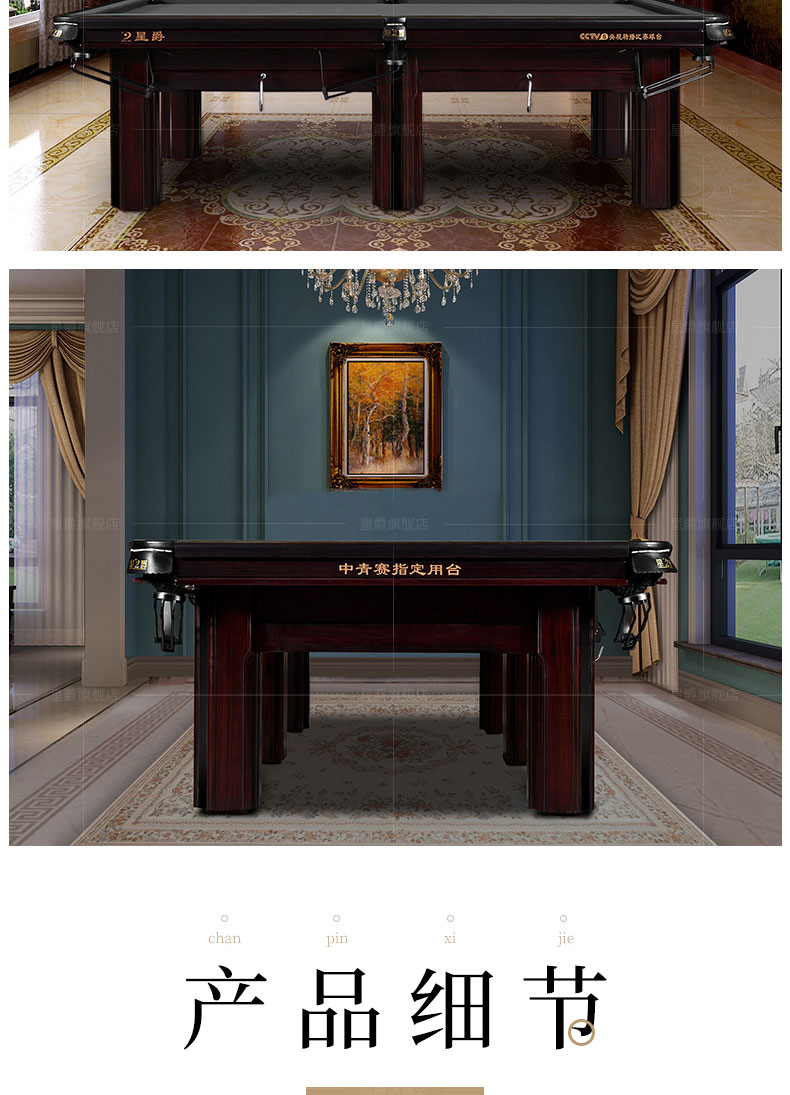 A級(jí)青石板,美國(guó)進(jìn)口防火板,實(shí)木扶手。尺寸:2.03*3.83*0.85米,配置:臺(tái)尼一張,英式球1盒,球桿4支,架桿4支,長(zhǎng)打長(zhǎng)架,巧粉12粒,手套2個(gè),皮頭10粒,膠水1粒,桿架1個(gè),三角框1個(gè)