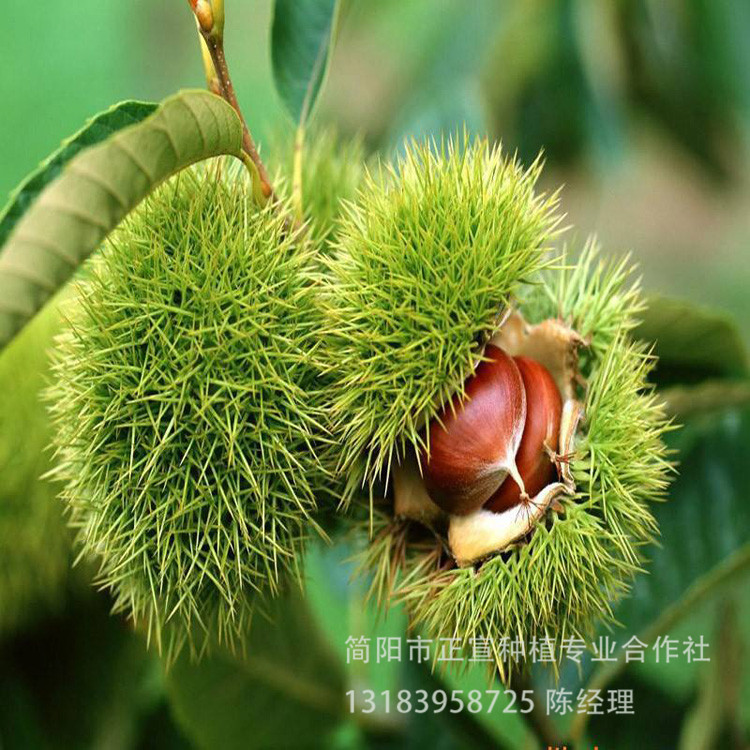 板栗苗高大壯實(shí), 產(chǎn)量高而穩(wěn)定, 抗逆性強(qiáng)。栗苞呈橢圓形,平均果重18-22克,它結(jié)果多,粒大,肉性糯,風(fēng)味獨(dú)特。生吃可當(dāng)水果,甘甜爽脆;風(fēng)干了吃,甜脆可口;蒸熟了吃,甜糯糯逗人口饞; 八月下旬成熟,果大色艷,表現(xiàn)一大二紅三亮,糯性宜菜食,果肉細(xì)膩,果味香甜,品質(zhì)優(yōu)良,果實(shí)成熟期在9月中旬,抗逆性強(qiáng),適應(yīng)性廣,易管理,耐儲(chǔ)運(yùn)。果肉含水率43.0%,干物重中糖含量15.76%,淀粉45.71%,淀粉糊化溫度59.0℃。