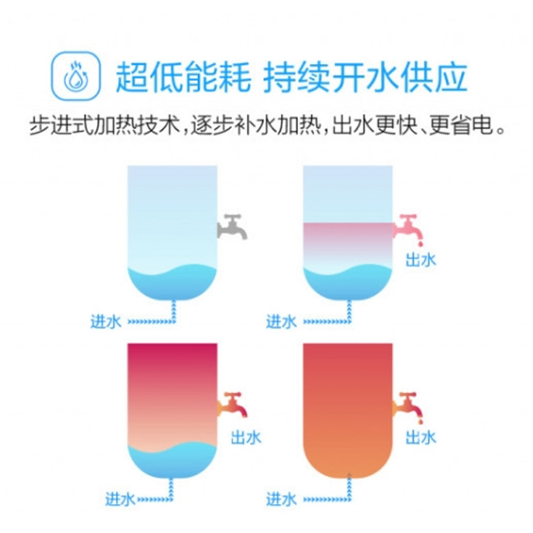 步進(jìn)式加熱技術(shù),逐步補(bǔ)水加熱,出水更快、更省電。