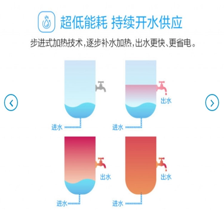 步進(jìn)式加熱技術(shù),逐步補(bǔ)水加熱,出水更快、更省電。