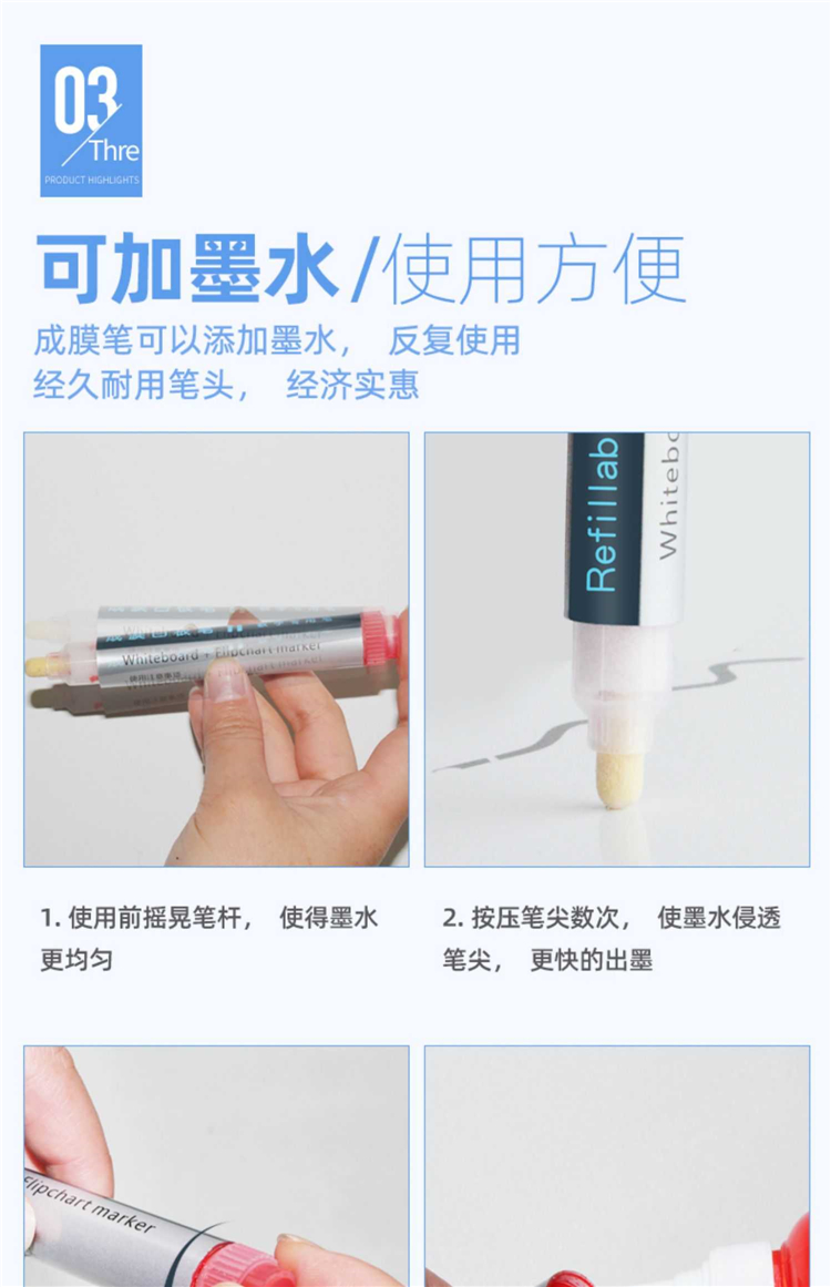 白板筆可加墨水投影白板專用 大容量易擦水溶性成膜筆可擦 粗頭大