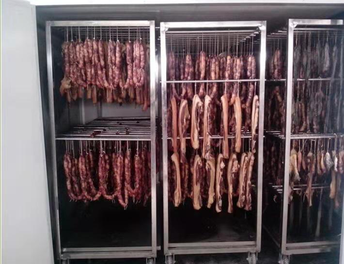 肉禽類產(chǎn)品同我們的生活息息相關(guān),在常用生產(chǎn)中烘干量也很大,且物料容易腐敗變質(zhì),因此控制要點是抑制細菌和平衡脫水;代表物料有臘肉、臘腸、板鴨、干巴等;通常用烘干房進行烘干。以臘肉為例,前期需快速升溫,保證物料不會變質(zhì),但是烘干過程中溫度又不能太高,否則油脂會快速溢出、產(chǎn)品也會熟化,并且在高溫作用下物料表皮會結(jié)痂,影響內(nèi)部水分析出,導(dǎo)致烘干品質(zhì)下降,烘干難度提升,影響產(chǎn)品外觀和品質(zhì)。