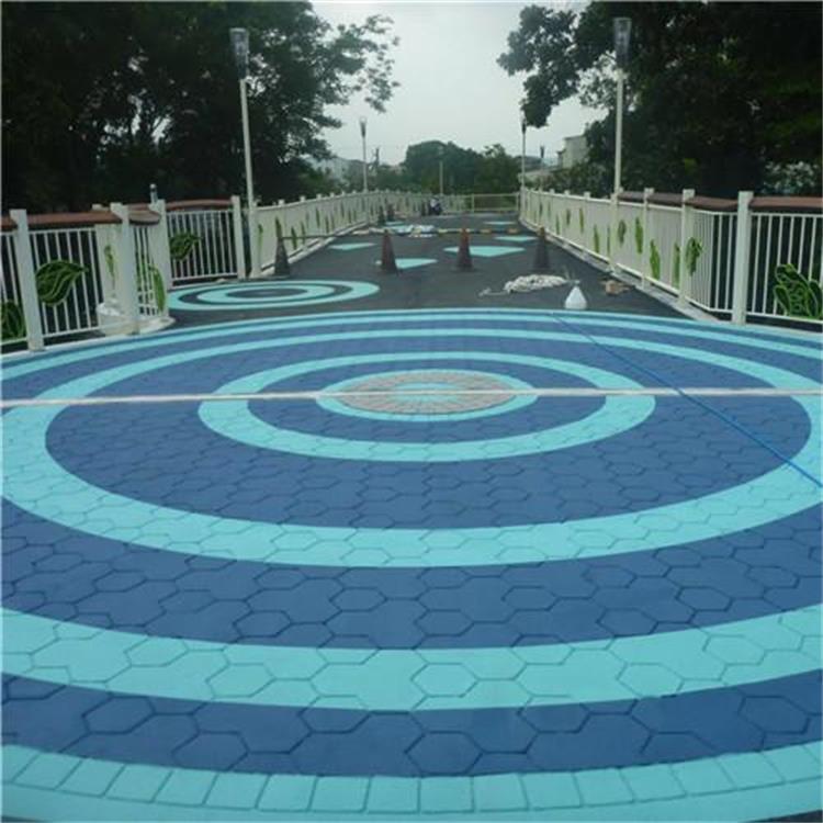 彩色透水混凝土使用單粒級粗骨料為骨架,加入少量細(xì)骨料或水泥凈漿作為骨料顆粒問的膠結(jié)層,形成具有孔隙結(jié)構(gòu)的多孔混凝土材料,即形成蜂窩狀結(jié)構(gòu),因此,具有良好的透水性。將彩色透水性混凝土直接攤鋪在路基基層上,經(jīng)壓實(shí)、養(yǎng)護(hù)等工藝形成的路面即為彩色砼透水路面,其中彩色有助于改變混凝土外觀,形成顯著標(biāo)識,而透水性混凝土能夠?qū)崿F(xiàn)穩(wěn)定、均質(zhì),相較于傳統(tǒng)封閉性路基屬開放式結(jié)構(gòu)。